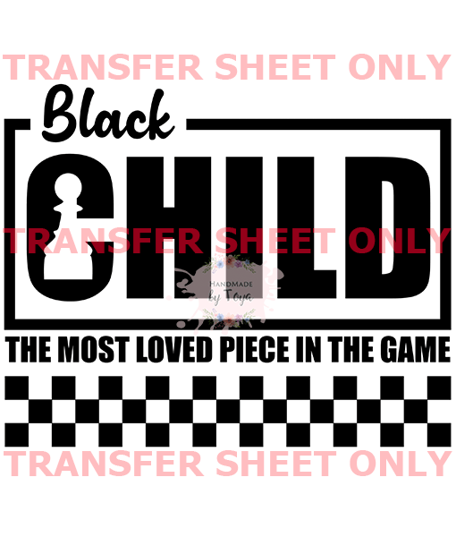 Black Child Most Loved In The Game (SCREEN PRINT IRON ON TRANSFER SHEET ONLY) BLACK