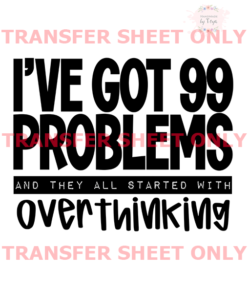Overthinking Problems (IRON ON TRANSFER SHEET ONLY)