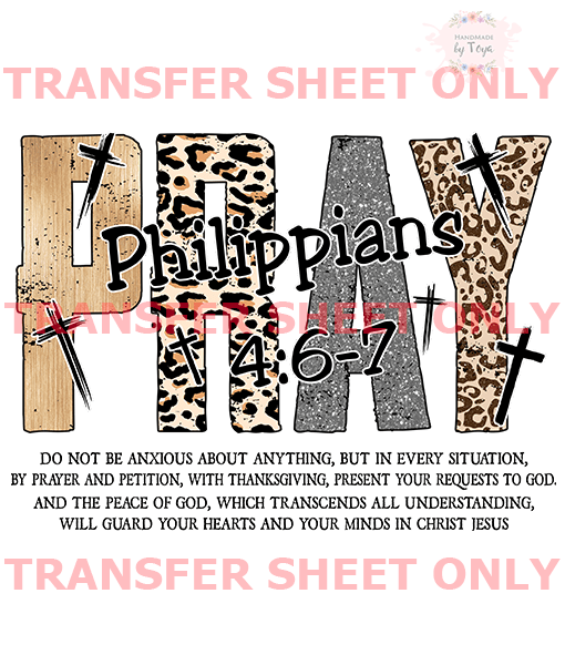 Pray Philippians 4:6-7 (IRON ON TRANSFER SHEET ONLY)