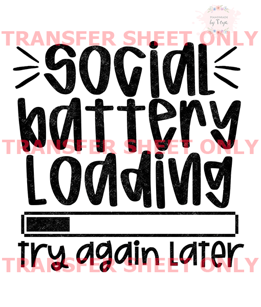 Social Battery Loading (IRON ON TRANSFER SHEET ONLY)