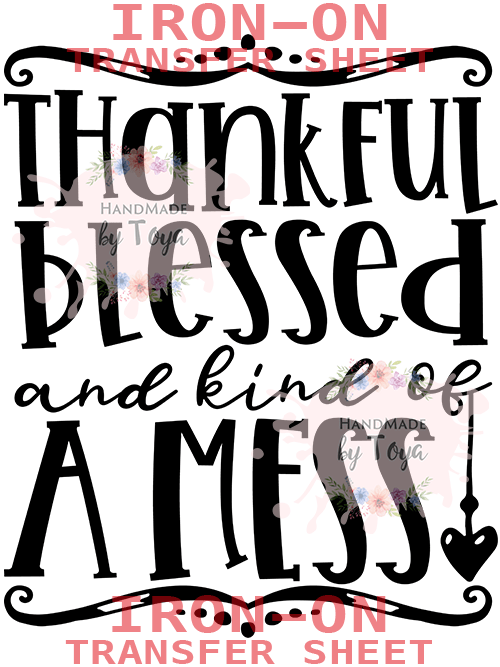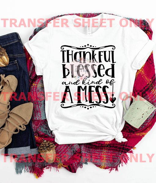 Thankful Blessed And Kind Of A Mess (SCREEN PRINT IRON ON TRANSFER SHEET ONLY)