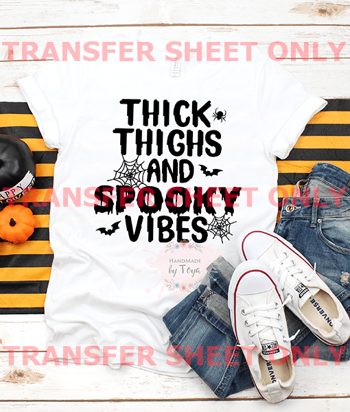 Thick Thighs And Spooky Vibes (SCREEN PRINT IRON ON TRANSFER SHEET ONLY)