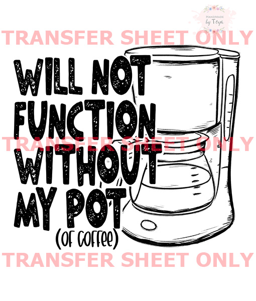 Will Not Function Without Pot (IRON ON TRANSFER SHEET ONLY)