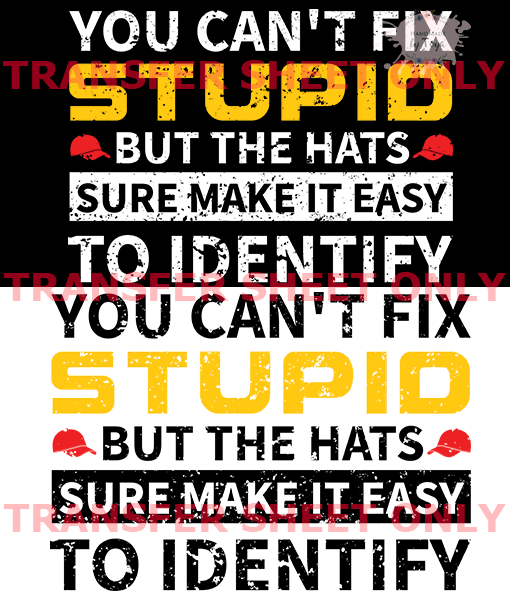 You Can’t Fix Stupid But The Hats Sure Make It Easy (IRON ON TRANSFER SHEET ONLY)